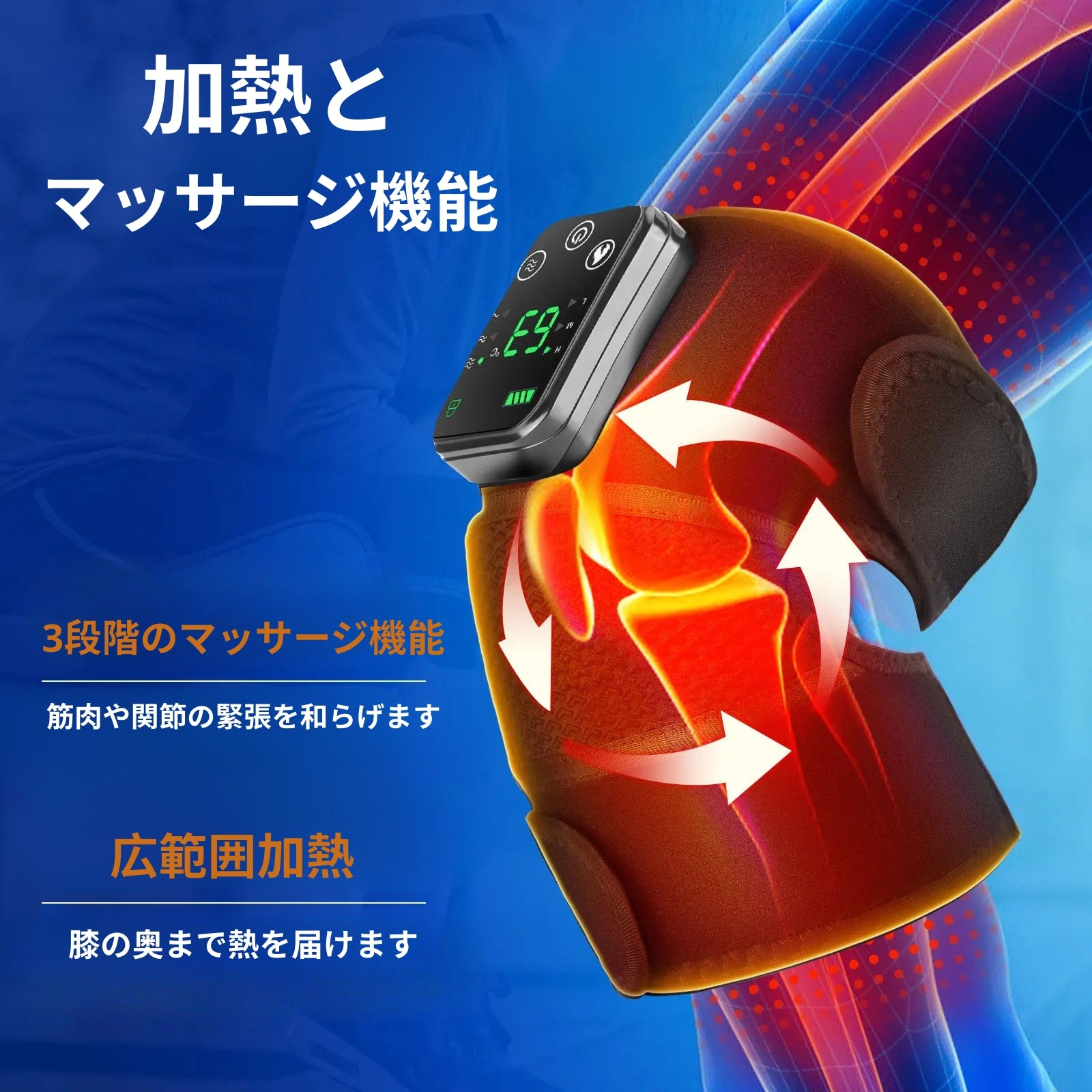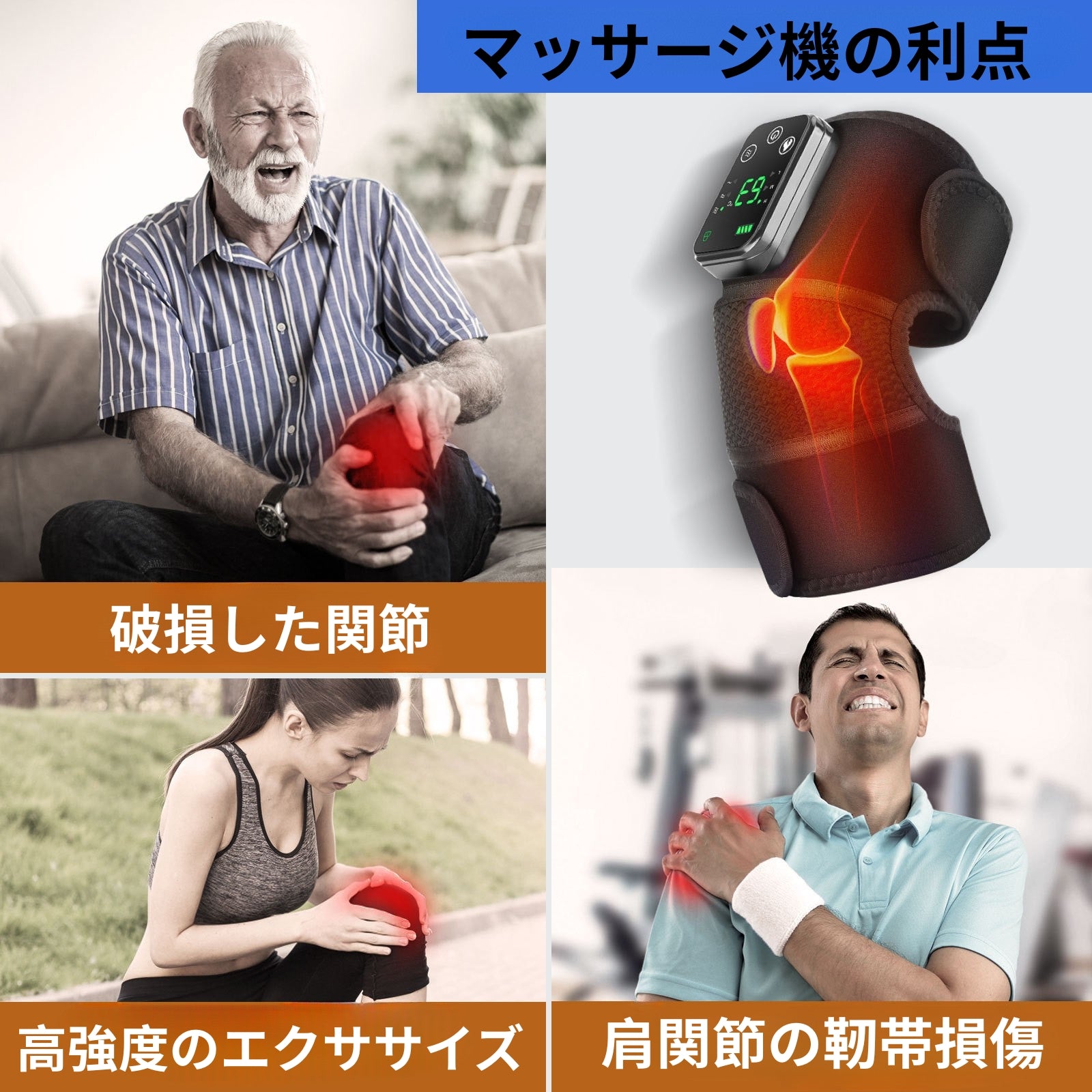 電気振動とUSB加熱、赤外線圧縮療法を備えた膝マッサージャー。肩や肘、膝に使える多機能マッサージパッドで、痛みをやさしく和らげます。